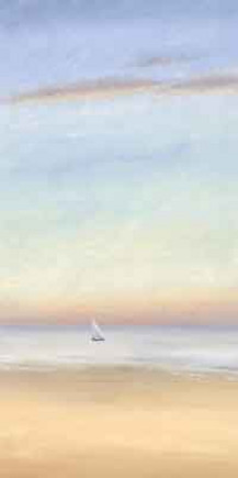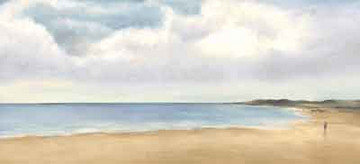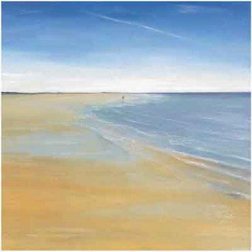 It was here that inspiration struck: a great walker, she spent hours enjoying the spacious landscape and empty beaches, and on returning to her studio would feel the urge to share the beauty of what she had experienced. This led her to take up painting once more, and her light and airy compositions do indeed capture the moment just as she hoped.